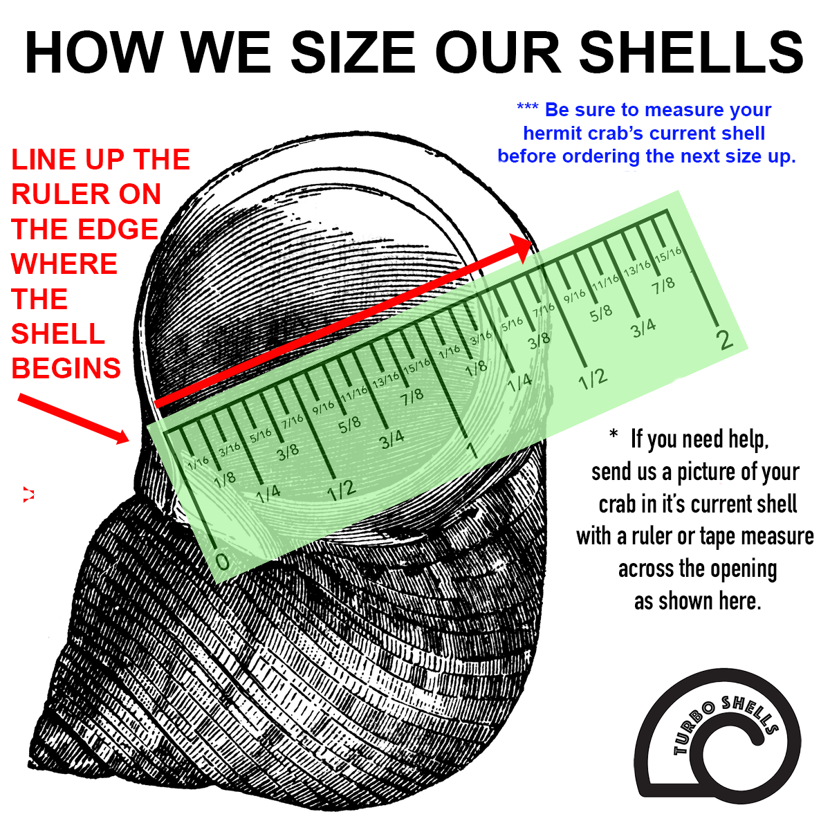 To ensure the perfect fit, please refer to our sizing guide image. All shells are measured by opening size (in inches) — not overall shell size.